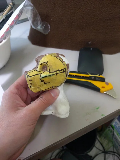 Sallos is a client designed green iguana character. He is made out of spandex, foam, and 3D printed pieces. His head was designed at 1/4 scale and built in 1/2” upholstery foam. His eyes are 3D printed and swap out using magnets to change the expression. His tail is articulating with a PVC skeleton inside. His outsoles were created using a custom mold and cast in tough urethane rubber.